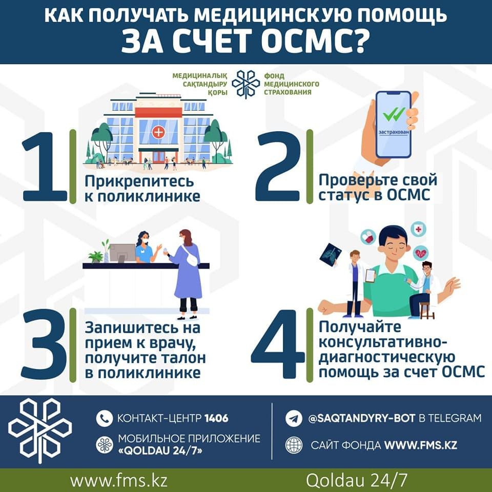 ОСМС - С заботой о вашем здоворье Скачать Фонд медицинского страхования Скачать ОСМС - Твоя надежная защита Скачать МӘМС - Сенің сенімді қорғаның Скачать Оказание паллиативной помощи и сестринский уход на уровне АПП №1 Скачать Оказание паллиативной помощи и сестринский уход на уровне АПП №2 Скачать Оказание паллиативной помощи и сестринский ухода на уровне стационара №1 Скачать Оказание паллиативной помощи и сестринский ухода на уровне стационара №2 Скачать Перечень заболевании , при которых оказывается паллиативная помощь (взрослые) Скачать Оказание паллиативной помощи в плановом порядке Скачать Оказание первичной медико-санитарной помощи в экстренном порядке Скачать Оказание стационарозамещающей помощи населению Скачать ОСМС вводится в Казахстане с 1 января 2020 года Скачать Ставки взносов и отчислений на ОСМС Скачать Оказание консультативно-диагностической помощи населению Скачать Что получают застрахованные казахстанцы №1 Скачать Что получают застрахованные казахстанцы №2 Скачать Оказание восстановительного лечения и мед.реабилитации 1 этап в стационаре в плановом порядке Скачать Оказание восстановительного лечения и мед.реабилитации 2 этап в стационаре Скачать Оказание восстановительного лечения и мед.реабилитации 3 этап в стационаре Скачать Маршрут пациента Скачать За кого государство платит взносы в фонд медстрахования Скачать Проект бизнес – процесса: Оказания консультативно – диагностической помощи в рамках ГОБМП и в системе ОСМС Издание №1 Скачать Проект бизнес – процесса: Оказание паллиативной помощи и сестринского ухода на уровне АПП Скачать Перечень заболеваний, при которых оказывается паллиативная помощи (Взрослые) Скачать Оказание паллиативной помощи и сестринского ухода на уровне стационара Скачать Перечень заболеваний, не входящих в перечень по кодам МКБ-10 для лечения в круглосуточном стационаре Скачать Предоставление медицинской помощи в стационаре в экстренном порядке (Проект) Скачать Оказание медицинской помощи в стационаре в экстренном порядке Скачать Оказание скорой медицинской помощи населению Скачать Оказание скорой медицинской помощи в стационаре в плановом порядке Скачать Оказание скорой медицинской помощи в стационаре в плановом порядке 2 Скачать Оказание скорой медицинской помощи населению 2 Скачать Оказание скорой медицинской помощи в стационаре в плановом порядке 3 Скачать Стационарозамещающая помощь (дневной стационар) Скачать Консультативно-диагностическая помощь (кдп) Скачать Стационарды алмастыратын көмек (күндізгі стационар) Скачать Первичная медико-санитарная помощь (пмсп) Скачать Медициналық-санитарлық алғашқы көмек (мсак) Скачать Вопросы – ответы по осмс Скачать Консультативтік-диагностикалық көмек (кдк) Скачать Обращение за необходимостью лечение и мед проведения 3 этапа МР реабилитации 2 этапа Скачать Обращение за необходимостью лечение и мед проведения 3 этапа МР реабилитации 2 этапа Скачать -
