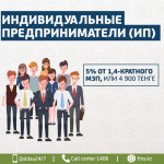 ИНДИВИДУАЛЬНЫЕ ПРЕДПРИНИМАТЕЛИ (ИП) - 5% от 1,4-кратного МЗП, или 4 900 тенге