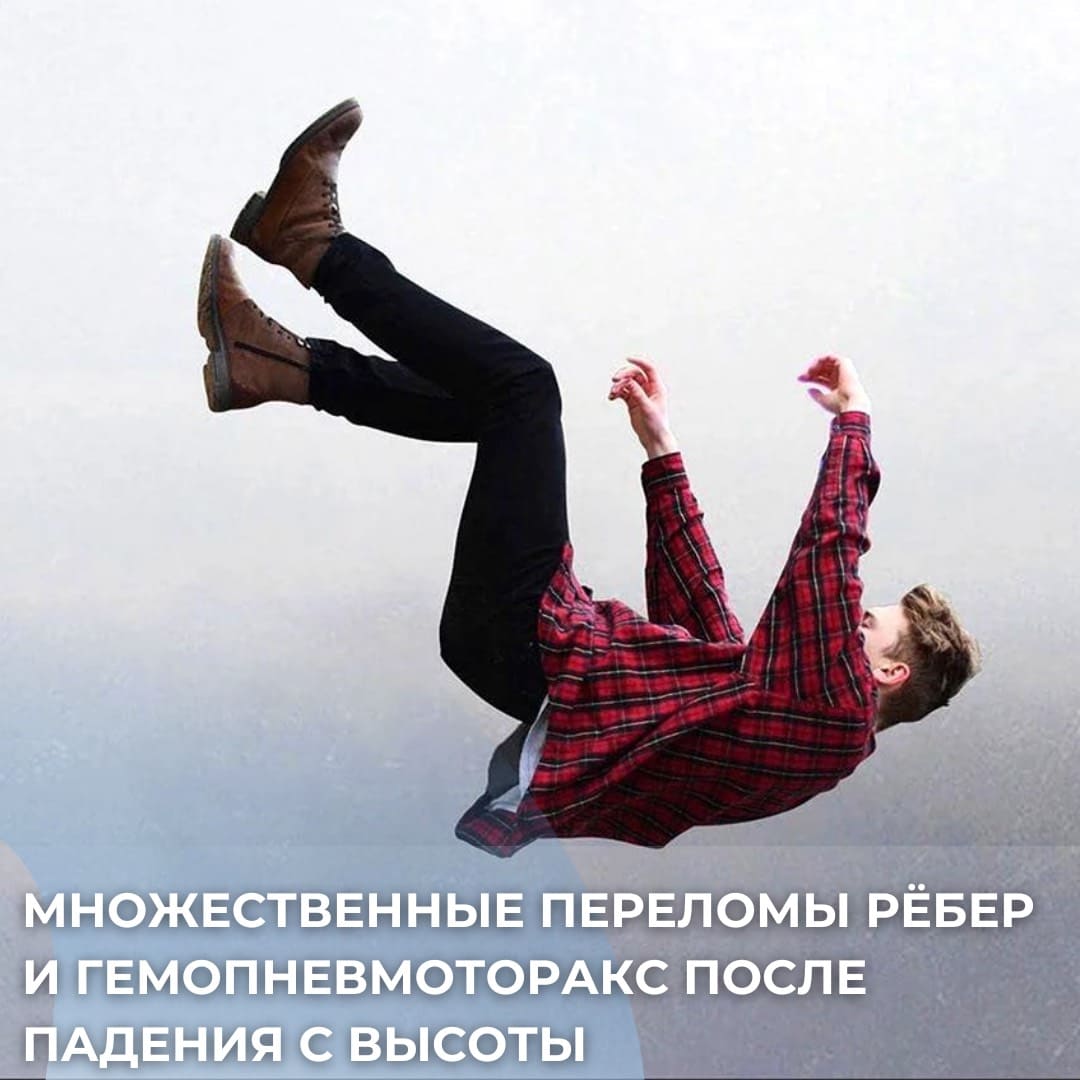 Пациент был экстренно доставлен в реанимационное отделение. Общее состояние оценивалось как тяжелое, обусловленное множественными травмами и их осложнениями, выраженной дыхательной и сердечно-сосудистой недостаточностью. Был диагностирован множественный перелом ребер с флотацией реберного каркаса: семь ребер были сломаны со смещением фрагментов внутрь, что сопровождалось гемопневмотораксом справа и шоком II-III степени.