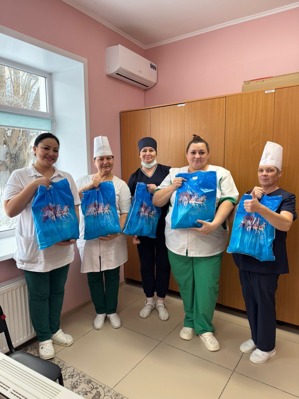 “Біздің аурухана қызметкерлері кәсіподақтан мерекелік сыйлықтар алды! ???? Бұл сыйлықтар – олардың еңбегіне, науқастарға деген қамқорлығына және ортақ іске қосқан үлесіне алғыс белгісі. Кәсіподаққа қолдау көрсетіп, мерекелік көңіл-күй сыйлағаны үшін алғысымыз шексіз!”